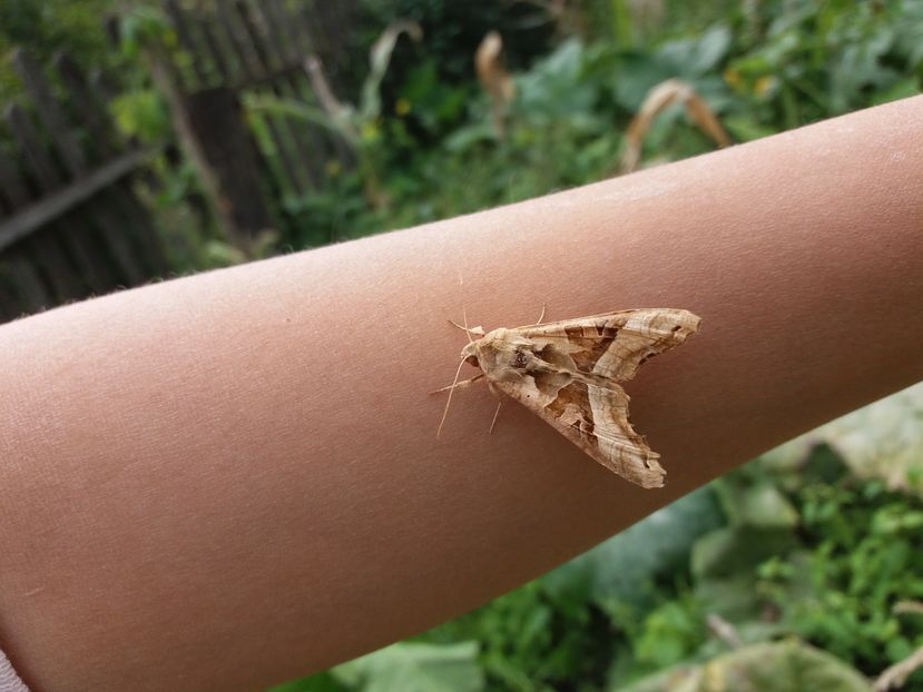 Un fluturas superb,care danseaza pe floarea de boz,o libelula gingasa,un fluture molie.....,mai mare dragul sa-i privesti!